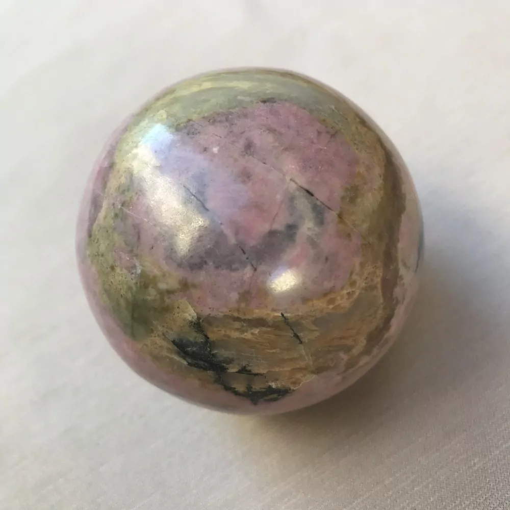 Jedinečná, ručně vypracovaná harmonizační koule z u nás vzácného Rodonitu.