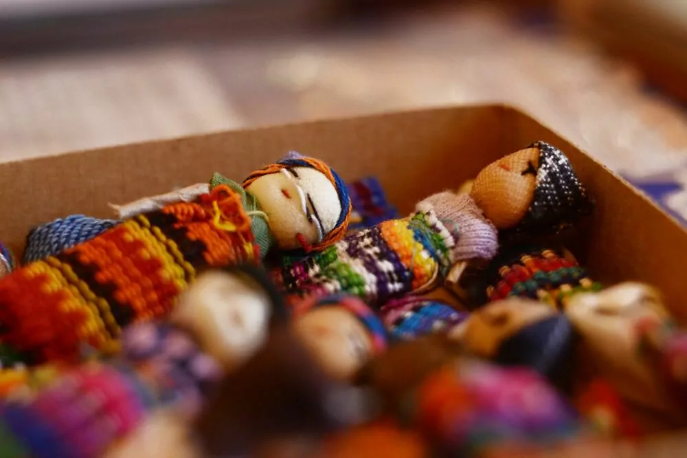 Tyto krásné panenky strachu jsou vyrobeny ručně z kousků bavlny a papíru, v tradičních guatemalských barvách.