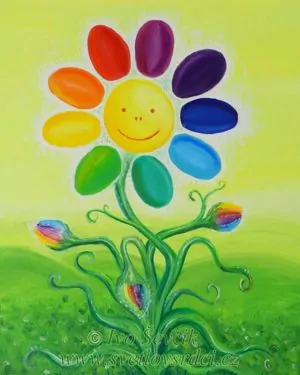 Obrázek veselé duhově barevné kytičky.