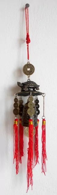 Feng Shui ochranná zvonkohra s želvou, zvonkem štěstí, mincemi a nekonečným uzlem.