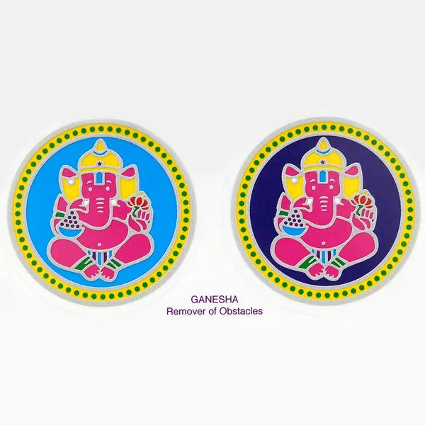 Barevná mandaly s motivem Ganéši, které Vám rozzáří okno, dveře nebo jakýkoli jiný hladký povrch. Zářivé, barevné odlesky, kterými mandala hýří ve chvíli, kdy jí prosvítá slunce, připomínají vitrážová okna v chrámech a kostelích.