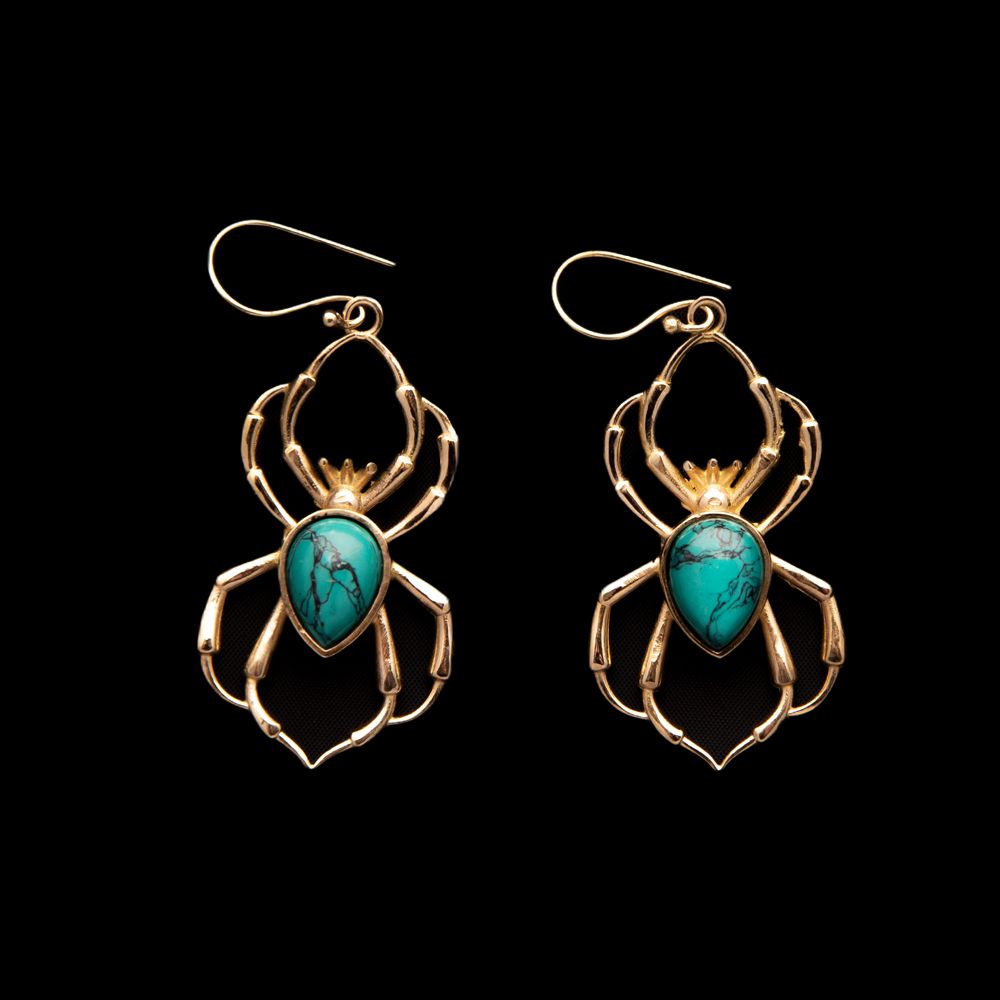 Neobvyklé náušnice Arachné jsou vyrobené ze zářivé mosazi a ozdobené korálkem tyrkenitu. Rozhodně se stanou nepřehlédutelnou ozdobou každé ženy. ;-)