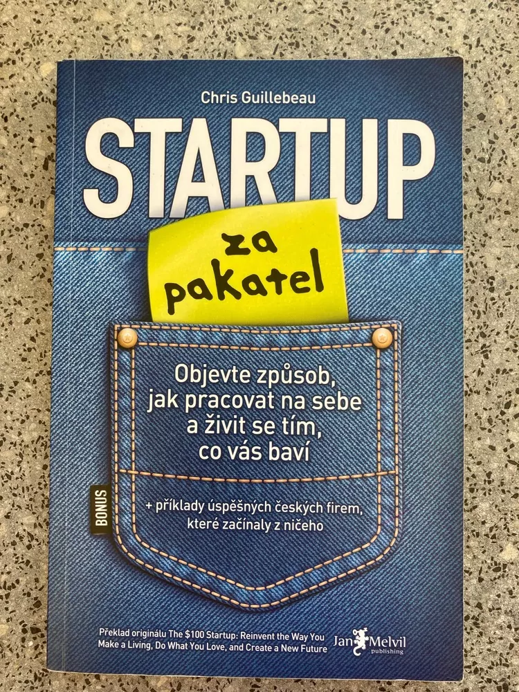 Doba je nelehká a vaše finanční situace se "sama od sebe" nezlepší. Na každém z nás leží tíha rozhodnutí, co se svým životem a co se svou obživou. Chris Guillebeau ve své knize s (velmi pracovně přeloženým) názvem "Startup za pakatel – Objevte způsob, jak pracovat na sebe a živit se tím, co vás baví" přináší čerstvý pohled na to, jak se dnes postavit na vlastní nohy. Na knize je úžasné, že se týká prostě každého z nás. Autor ukazuje, že s trochou vůle a entuziazmu je téměř každý dospělý člověk schopen tvořit svůj vlastní malý byznys, jehož smysl pak je nejen v příjmu, ale i v radosti, kterou přináší. Chris vyhledal a vyslechl 1500 podnikatelů od ročního příjmu 1 milion korun nahoru, kteří však začínali s pár tisícovkami v kapse. Z nich vybral padesátku nejzajímavější příběhů a hledal v nich společné rysy. Zjistil fascinující skutečnosti o tom, jak s poměrně malými prostředky (v mnoha případech konkrétně s jednou stodolarovkou) lidé nakonec proměnili svou vášeň, potřebu či koníček v úspěšný, smysluplný a zábavný byznys.